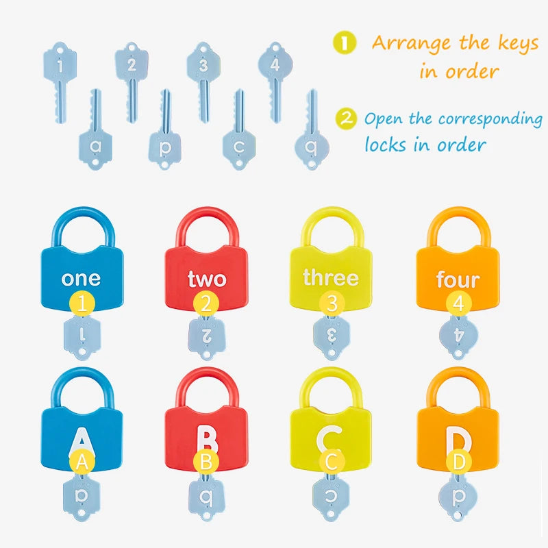 Kids Number Alphabet Unlock Key Educational Toys Montessori Alphanumeric Lock Matching Games Learning Cognition Toys For Toddler